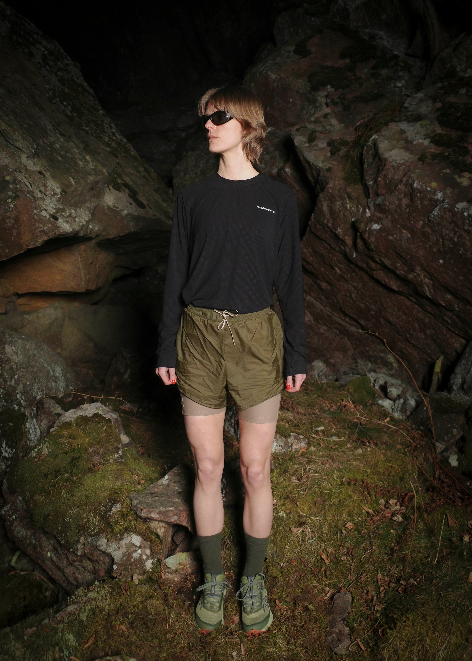 the kuta distance l.ab trail short built with a shell fabric and comfortable compression liner, featuring hidden side pocket for easy carrying of small goods. the trail shorts 002 are also updated with a new silhouette and making.